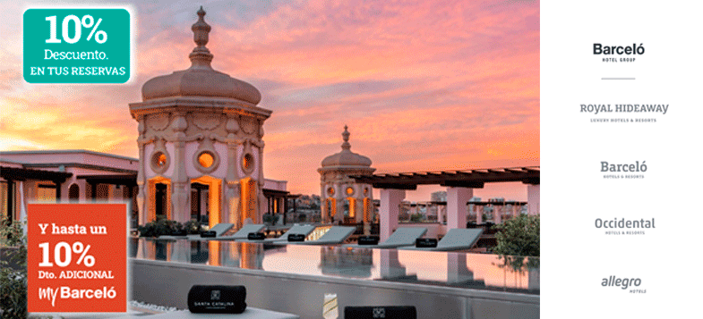 10% de descuento a SUSCRIPTORES sobre la mejor oferta disponible en www.barcelo.com